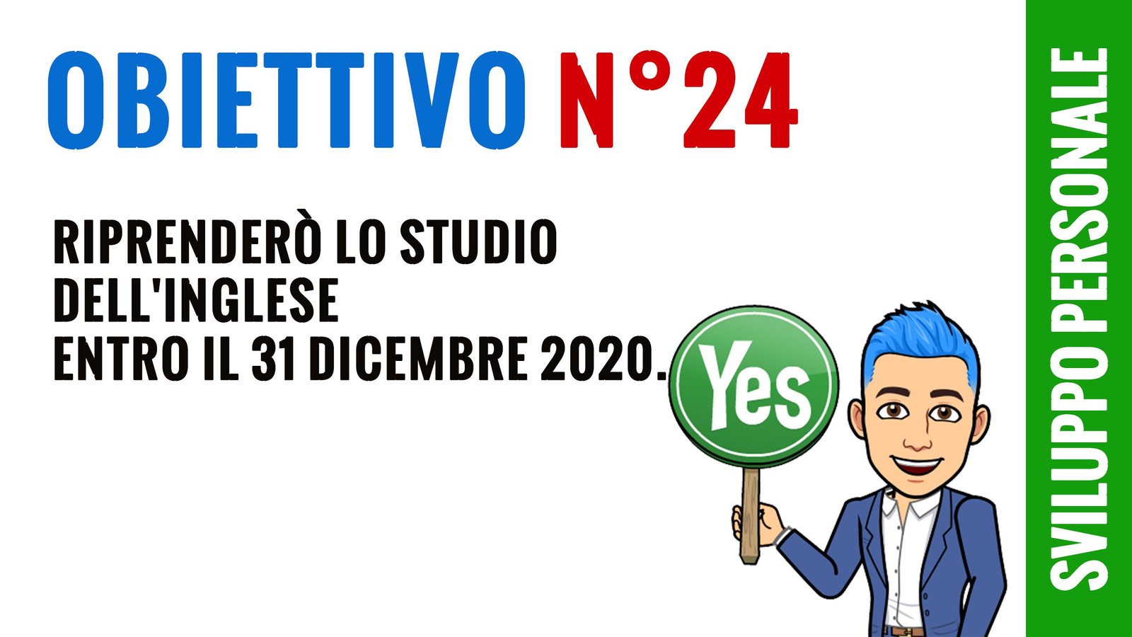 24) Riprenderò lo studio dell’inglese che ho abbandonato per troppo tempo per imparare a parlare e scrivere meglio in inglese entro il 31 Dicembre 2020.