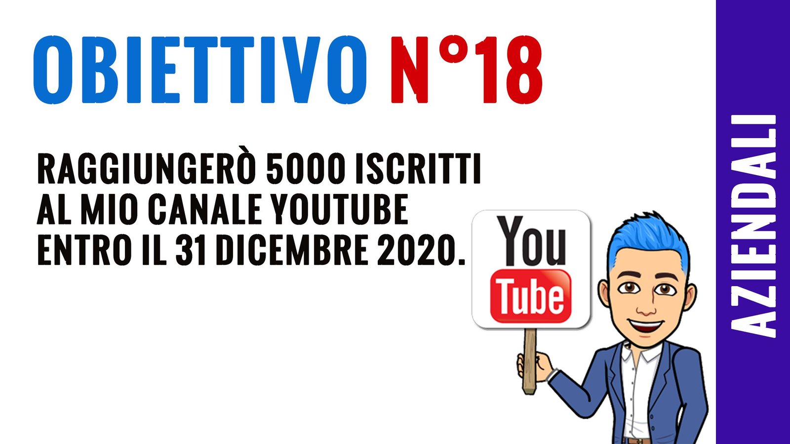 18) Raggiungerò 5000 iscritti Youtube al mio canale entro il 31 Dicembre 2020.