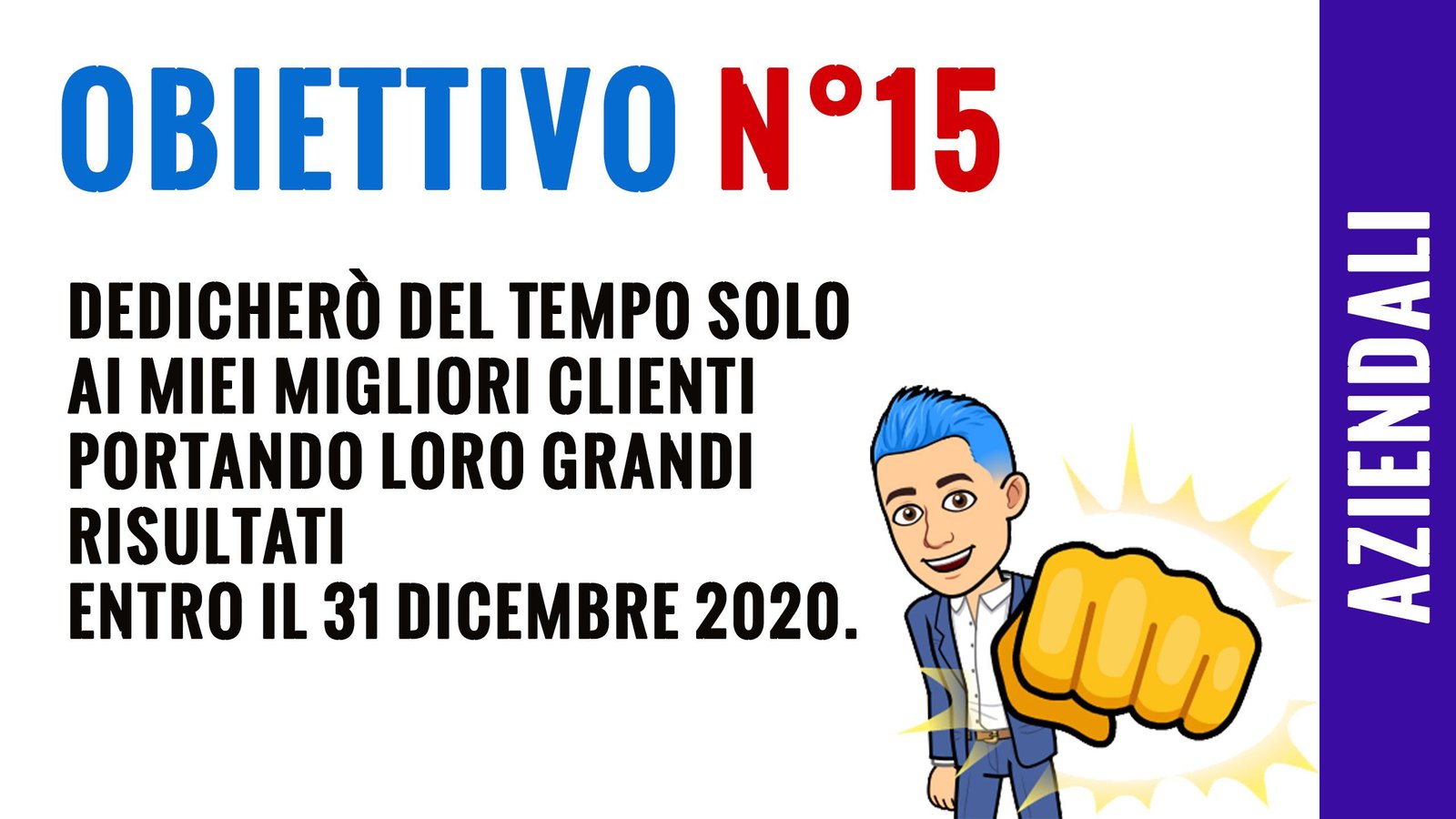 15) Dedicherò del tempo solo ai miei migliori clienti portando loro grandi risultati entro il 31 Dicembre 2020.