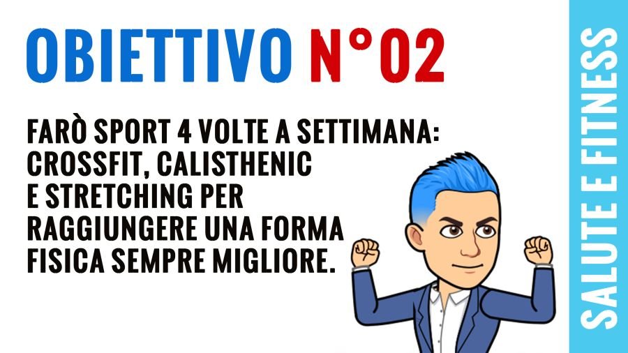2) Farò sport almeno 4 volte a settimana, continuando ad allenarmi in Crossfit, Calisthenic e facendo Stretching per raggiungere una forma fisica sempre migliore.