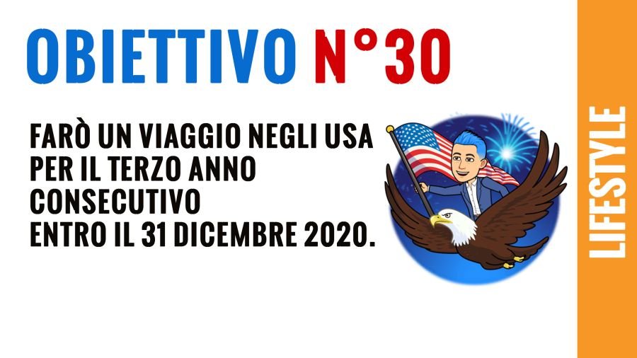 30) Farò un viaggio negli USA per il terzo anno consecutivo entro il 31 Dicembre 2020.