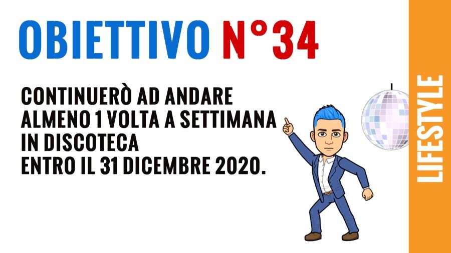 34) Continuerò ad andare almeno 1 volta a settimana in discoteca entro il 31 Dicembre 2020.