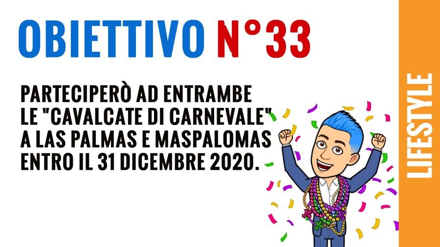 33) Parteciperò ad entrambe le “Cavalcate di Carnevale” a Las Palmas e Maspalomas entro il 31 Dicembre 2020.