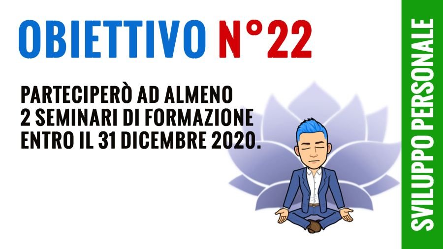 22) Parteciperò ad almeno 2 seminari di formazione per acquisire nuove conoscenze entro il 31 Dicembre 2020.