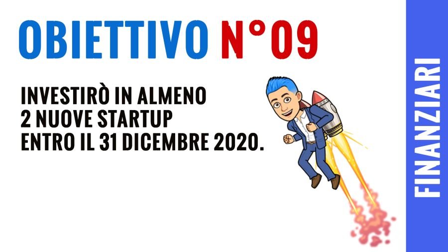 9) Investirò in almeno 2 nuove startup entro il 31 Dicembre 2020.
