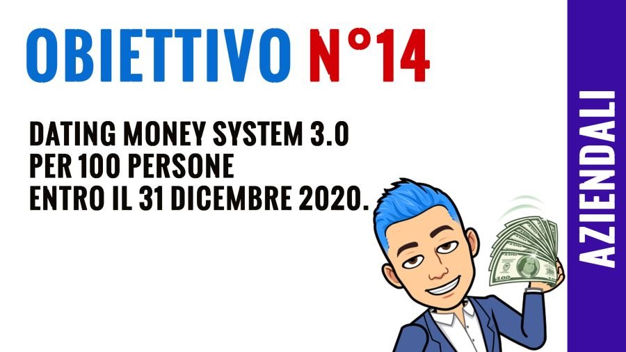 14) Creerò Dating Money System 3.0 per insegnare a 100 persone a guadagnare con il Dating entro il 31 Dicembre 2020.