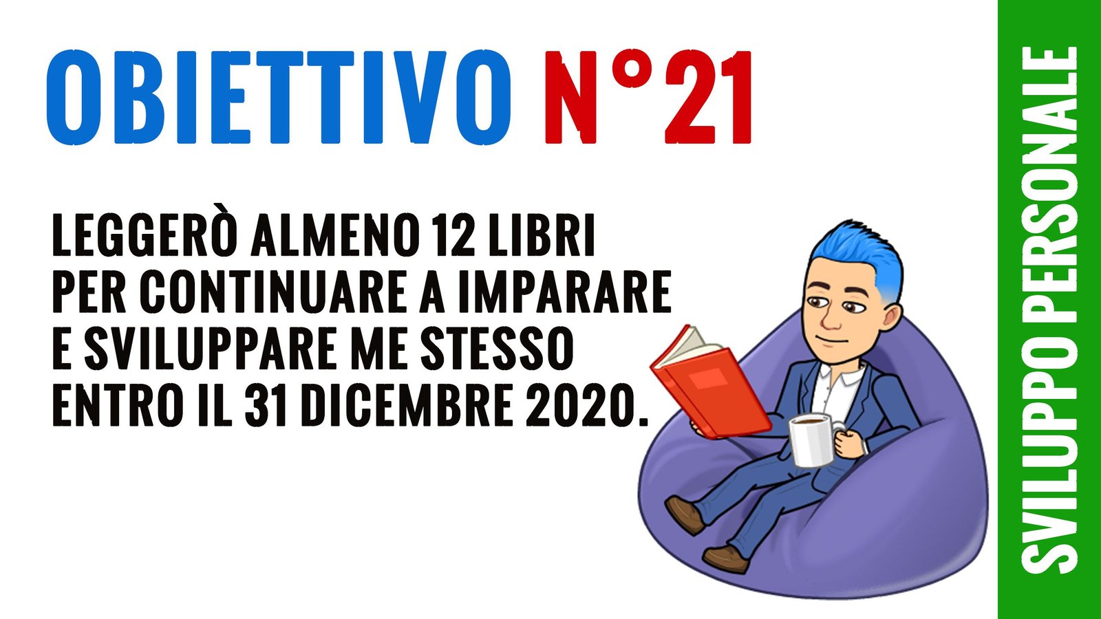 21) Leggerò almeno 12 libri per continuare a imparare e sviluppare me stesso in tutti gli ambiti della vita entro il 31 Dicembre 2020.
