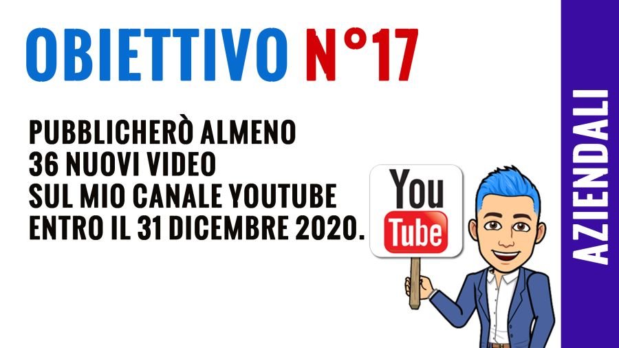 17) Pubblicherò almeno 36 nuovi video sul mio canale Youtube entro il 31 dicembre 2020.