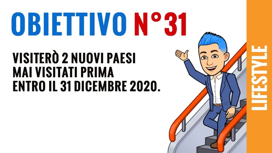 31) Visiterò 2 nuovi paesi mai visitati prima entro il 31 Dicembre 2020.