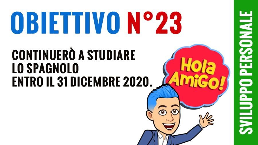23) Continuerò a studiare lo spagnolo per imparare a parlare e scrivere sempre meglio la lingua del paese in cui vivo entro il 31 Dicembre 2020.