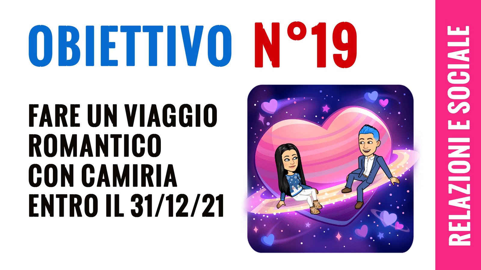 19) Farò un viaggio romantico con Camiria entro il 31 Dicembre 2021.