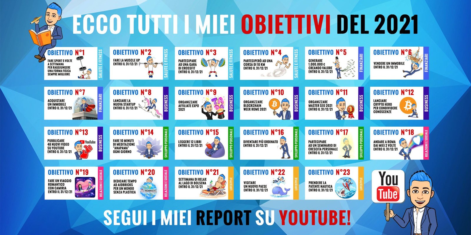 In questa sesta ed ultima area ho inserito gli obiettivi relativi al viaggio, divertimento e lifestyle.